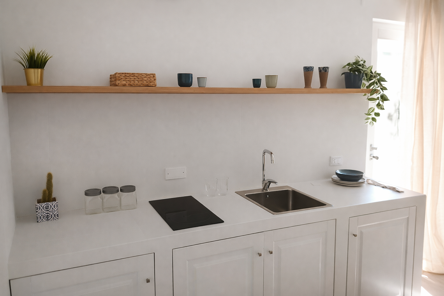 Buganvillea è una stanza luminosa e accogliente che richiama i colori vivaci e l’atmosfera mediterranea di Procida. I suoi toni caldi e delicati si ispirano ai fiori di bouganville che adornano i vicoli dell’isola, creando un ambiente elegante e rilassante. Le pareti chiare, i tessuti morbidi e i dettagli naturali donano alla stanza un senso di armonia e semplicità. L’arredo, essenziale ma curato, combina linee moderne e materiali naturali, offrendo comfort e stile in perfetto equilibrio. La luce naturale che entra dagli spazi esterni rende l’ambiente ancora più luminoso e accogliente. Buganvillea è il luogo ideale per chi desidera vivere un soggiorno tranquillo, immerso nella bellezza autentica di Procida. Un piccolo rifugio dove relax, colore e atmosfera mediterranea si incontrano per regalare un’esperienza piacevole e indimenticabile.